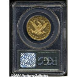 <B>1878-S<$10> MS64 PCGS.</B></I> The 1878-S Ten Dollar was struck just a year before an explosive increase in S-mint production of Eagles. Just 26,100 pieces were minted, and it is scarce in any condition, being seldom available better than a low-end AU. This remarkably preserved and produced example is assuredly one of the finest pieces known, being at the very least tied for that honor (there is a distinct possibility that the NGC census represents a resubmission of this exact coin) with a similarly graded 1878-S at NGC, and will undoubtedly be of great interest to many collectors of this series.<BR> The surfaces are a rich golden color with prooflike fields and uncommonly bold design elements. As for identifying marks, the most obvious one is a small dig in the upper reverse field between the S and O in STATES OF. There is also a shallow scratch in the field below TRUST. On the obverse there is a reeding mark that runs roughly parallel to the front of the coronet. Population: 1 in 64, 0 finer (3/04). <BR><BR><B>Important notice:</B> Heritage usually auctions material at the rate of 200-250 lots per hour. On some occasions eBay Live bid software or the Internet may not be able to keep up with the pace of the auction. We recommend placing a realistic absentee bid now as insurance to avoid disappointment. Occasionally the auctioneer may eliminate or reject an eBay Live bid, and the auctioneer may also reopen a lot after the close of the eBay live bidding (usually because we missed an audience bid), and may reject your bid even if it shows you as the winning bidder. By bidding via eBay Live, you agree that Heritage may award the lot to another bidder at its sole discretion under the circumstances described above or any other reasonable circumstances. Since eBay bids are not shown to us until we open the lot on the floor, we treat those bids just like floor bids. In most cases the floor responds before the eBay bid is presented to us, due to Internet lag time, so for consistency we have made it a policy that floor bids are always considered first over tie eBay live bids. Also please note that all Heritage lots purchased through eBay Live carry a 20% Buyer's Premium. Please make sure you read the Terms and Conditions before you bid.