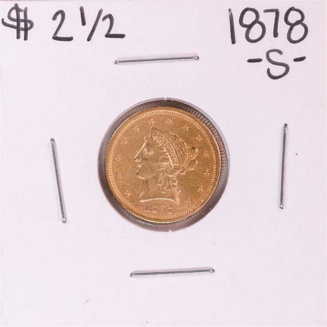 One 1878-S $2 1/2 Liberty Head Quarter Eagle Gold Coin.