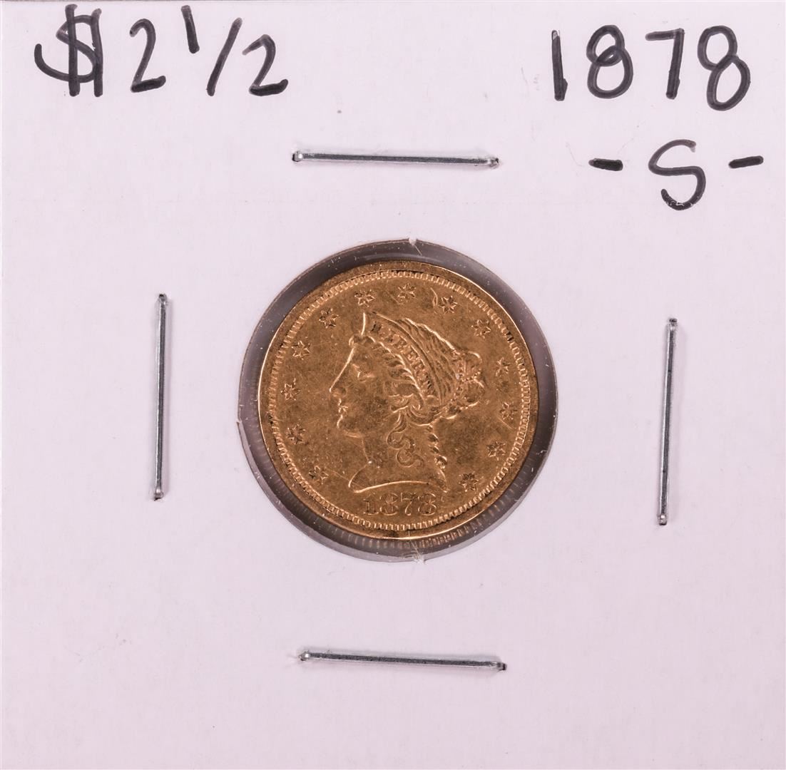 One 1878-S $2 1/2 Liberty Head Quarter Eagle Gold Coin.