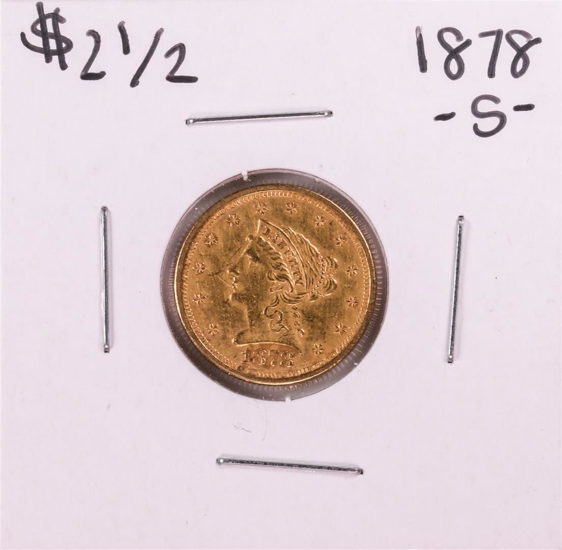 One 1878-S $2 1/2 Liberty Head Quarter Eagle Gold Coin.