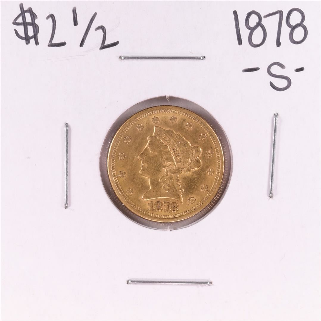 One 1878-S $2 1/2 Liberty Head Quarter Eagle Gold Coin.