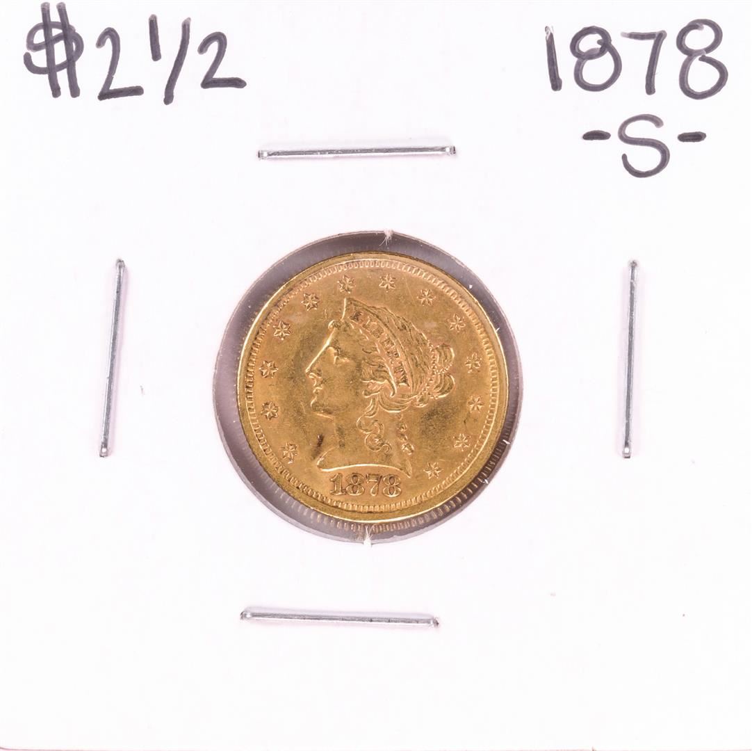 One 1878-S $2 1/2 Liberty Head Quarter Eagle Gold Coin.