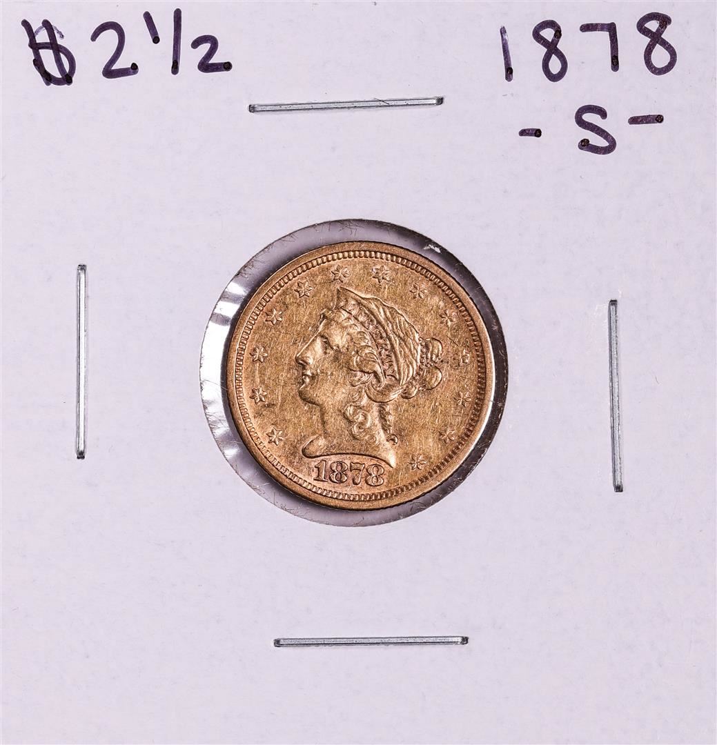 One 1878-S $2 1/2 Liberty Head Quarter Eagle Gold Coin.