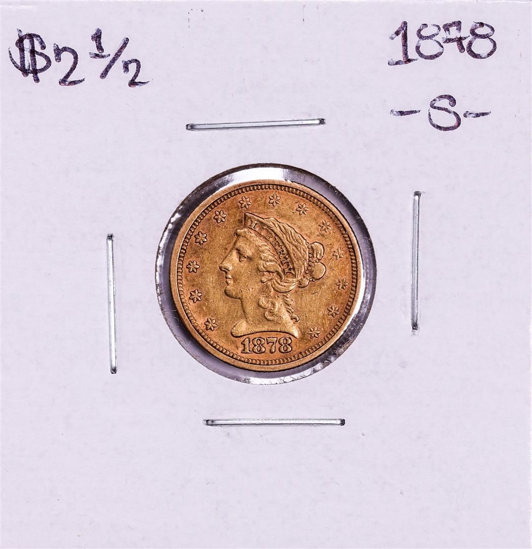 One 1878-S $2 1/2 Liberty Head Quarter Eagle Gold Coin.