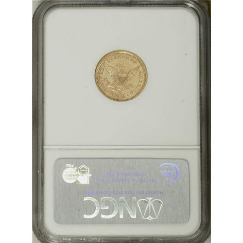 <B>1878-S $2 1/2 MS61 Prooflike NGC.</B></I> A pinpoint-sharp and flashy quarter eagle that has the overall look of a finer grade. Paper money finally traded at par with gold in 1878, which led to a production increase in lower denomination gold coins that year. As of (1/07), the only example certified as Prooflike by NGC.<BR><BR><b>Shipping:</b> Coins & Currency (<a target="_blank" href="http://www.heritageauctions.com/common/shipping.php">view shipping information</a>)