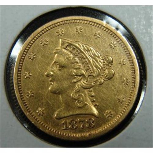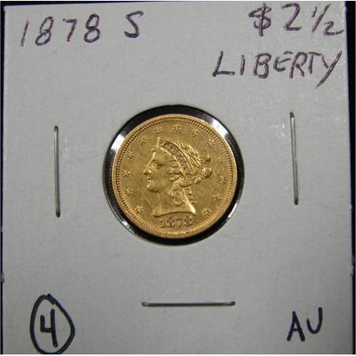 1878-S $2 ½ LIBERTY GOLD COIN. AU.