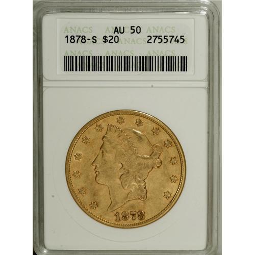 1878-S $20 AU50 ANACS. NGC Census: (12/1029). PCGS