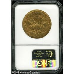<B>1878-S $20 AU50 NGC.</B></I> Lightly worn with moderate abrasions. This example has pleasing greenish-gold color with hints of rose toning.<BR><I>From The Mike Jacobson Collection.</B></I> Lot:9151