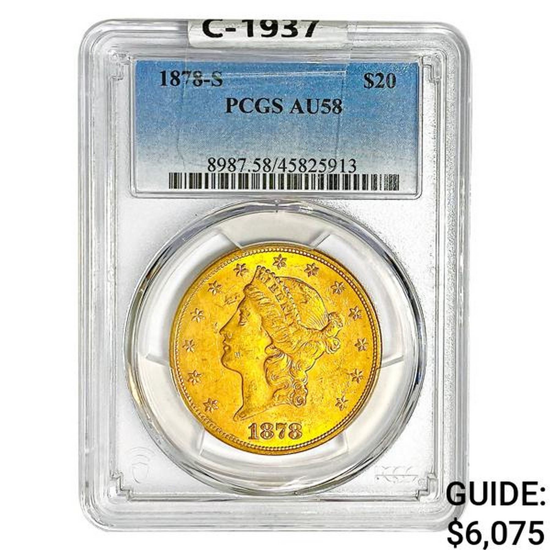 1878-S $20 Gold Double Eagle PCGS AU58