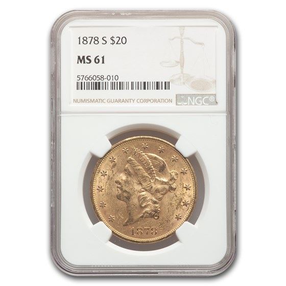 One piece 1878-S $20 Liberty Gold Double Eagle MS-61 NGC
