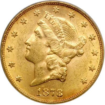 1878-S $20 Liberty. PCGS graded MS-61. Lightly toned (PCGS # 8987) .