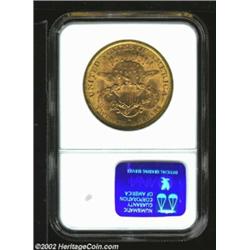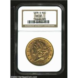 1878-S $20 MS61 NGC. A boldly struck piece with extensive luster and greenish-gold color. The obvers