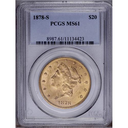1878-S $20 MS61 PCGS. Well struck and lustrous, with e 1878-S[$20] MS61 PCGS.