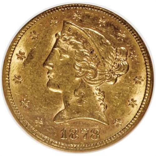 1878-S $5 AU58 NGC. NGC Census: (153/83). PCGS Pop