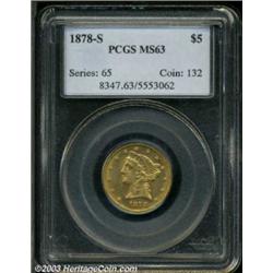 <table><tr><td><TABLE cellSpacing=0 cellPadding=0 width="100%" bgColor=#000000 border=0><TBODY> <TR><TD width="100%"><TABLE cellSpacing=1 cellPadding=3 width="100%" border=0><TBODY><TR><TD width="100%" bgColor=#79735c><FONT face=arial color=#ffffff size=3><B>Description</B> </FONT></TD></TR><TR><TD width="100%" bgColor=#ffffff><FONT face=arial size=2><B>1878-S $5 MS63 PCGS.</B></I> While we have handled a couple dozen '78-S fives over the past several years, the number of Mint State pieces can be counted on one hand. This Select example is well struck in all areas, the bright surfaces are remarkably lustrous for the grade. The coin has an even reddish cast overall, and one curving mark is mentioned in the right obverse field. Population: 5 in 63, 1 finer (10/03). </FONT></TD></TR></TBODY></TABLE></TD></TR></TBODY></TABLE><BR><A name=PricesRealized></A><TABLE cellSpacing=0 cellPadding=0 width="100%" bgColor=#000000 border=0><TBODY><TR><TD width="100%"><TABLE cellSpacing=1 cellPadding=3 width="100%" border=0><TBODY><TR><TD width="100%" bgColor=#79735c><A name=PR><FONT face=arial color=#ffffff size=3><B>Previous Prices from Heritage Auctions</B> </FONT></A></TD></TR><TR><TD bgColor=#f6f6ed><TABLE cellSpacing=0 cellPadding=0 width="100%" border=1><TBODY><TR><TD align=middle width="33%"><B>Date</B></TD><TD align=middle width="33%"><B>Service</B></TD><TD align=middle width="33%"><B>Price</B></TD></TR><TR bgColor=whitesmoke><TD width="33%"><B>01/06/1996</B></TD><TD width="33%">PCGS</TD><TD width="33%">$5,500.00</TD></TR><TR bgColor=whitesmoke><TD width="33%"><B>09/01/1990</B></TD><TD width="33%">PCGS</TD><TD width="33%">$3,410.00</TD></TR></TBODY></TABLE></TD></TR><TR><TD bgColor=#ffffff><FONT face=arial size=1 ?>PLEASE NOTE: All prices realized reflect the final hammer price PLUS the buyer's premium in auctions that charge a buyer's premium. Each item has a notation at the top of the listing indicating whether that lot included a buyer's premium. Example: A item that sells with a final hammer price of $100 and a 20% buyer's premium will display with a price realized of $120. All information listed is intended to be as accurate as possible, but errors are possible. Please use this guide carefully and inform us of any inaccuracies. </FONT></TD></TR></TBODY></TABLE></TD></TR></TBODY></TABLE><BR><TABLE cellSpacing=0 cellPadding=0 width="100%" bgColor=#000000 border=0><TBODY><TR><TD width="100%"><TABLE cellSpacing=1 cellPadding=3 width="100%" border=0><TBODY><TR><TD width="100%" bgColor=#79735c colSpan=6><FONT face=arial color=#ffffff size=3><B>Price Guide*</B> </FONT></TD></TR><TR bgColor=#f6f6ed><TD align=middle><B>Grade</B> </TD><TD align=middle><B>Coin World<BR>(Trends)</B> </TD><TD align=middle><B>Numismedia<BR>Retail</B> </TD><TD align=middle><B>Numismedia<BR>Wholesale</B> </TD><TD align=middle><B>Coin<BR>Universe</B> </TD><TD align=middle><B>Heritage<BR>Value Index</B> </TD></TR><TR bgColor=#ffffff><TD align=middle>62</TD><TD align=right>$2,000.00</TD><TD align=right>---</TD><TD align=right>$1,450.00</TD><TD align=right>$1,450.00</TD><TD align=right>$1,416.56</TD></TR><TR style="FONT-WEIGHT: bold" bgColor=#cccfdd><TD align=middle>63</TD><TD align=right>$5,000.00</TD><TD align=right>---</TD><TD align=right>$2,700.00</TD><TD align=right>$5,400.00</TD><TD align=right>$3,416.67</TD></TR><TR bgColor=#ffffff><TD align=middle>64</TD><TD align=right>$8,500.00</TD><TD align=right>---</TD><TD align=right>$5,825.00</TD><TD align=right>---</TD><TD align=right>$5,787.50</TD></TR><TR bgColor=#ffffff><TD colSpan=6><FONT size=1>*All information listed is intended to be as accurate as possible, but errors are possible. No item may be returned or refused based on this information which is provided as a service to our customers. You should contact each pricing source directly to determine the accuracy of this information. </FONT></TD></TR></TBODY></TABLE></TD></TR></TBODY></TABLE><BR><TABLE cellSpacing=0 cellPadding=0 width="100%" bgColor=#000000 border=0><TBODY><TR><TD width="100%"><TABLE cellSpacing=1 cellPadding=3 width="100%" border=0><TBODY><TR><TD width="100%" bgColor=#79735c><FONT face=arial color=#ffffff size=3><B>Population Guide</B> </FONT></TD></TR><TR bgColor=#ffffff><TD align=middle><!-- Begin Output of Population Grid--><TABLE cellSpacing=0 cellPadding=0 width="100%" border=0><TBODY><TR><TD vAlign=center><TABLE cellSpacing=0 width="100%" border=1 cellsadding="3"><TBODY><TR><TD vAlign=center><TABLE cellSpacing=0 cellPadding=3 width="100%" border=1><TBODY><TR><TD vAlign=center align=middle bgColor=#f0f1e8 colSpan=2 <CENTER><FONT face=Arial size=2><B>PCGS Pop </B></FONT><CENTER></CENTER></TD><TD vAlign=center align=middle bgColor=#f0f1e8 colSpan=2><CENTER><FONT face=Arial size=2><B>NGC Pop</B></CENTER></FONT></TD></TR><TR><TD vAlign=center><FONT face=Arial size=2>(63)</FONT> </TD><TD vAlign=center align=right><FONT face=Arial size=2>5</FONT> </TD><TD vAlign=center><FONT face=Arial size=2>(63)</FONT> </TD><TD vAlign=center align=right><FONT face=Arial size=2>2</FONT> </TD></TR><TR><TD vAlign=center><FONT face=Arial size=2>(>63)</FONT> </TD><TD vAlign=center align=right><FONT face=Arial size=2>1</FONT> </TD><TD vAlign=center><FONT face=Arial size=2>(>63)</FONT> </TD><TD vAlign=center align=right><FONT face=Arial size=2>4</FONT> </TD></TR></TBODY></TABLE></TD></TR></TBODY></TABLE></TD></TR></TBODY></TABLE><!-- End Output of Population Grid--></TD></TR></TBODY></TABLE></TD></TR></TBODY></TABLE><BR><TABLE cellSpacing=0 cellPadding=0 width="100%" bgColor=#000000 border=0><TBODY><TR> Important notice: Heritage usually auctions material at the rate of 200-250 lots per hour. On some occasions eBay Live bid software or the Internet may not be able to keep up with the pace of the auction. We recommend placing a realistic absentee bid now as insurance to avoid disappointment. Occasionally the auctioneer may eliminate or reject an eBay Live bid, and the auctioneer may also reopen a lot after the close of the eBa