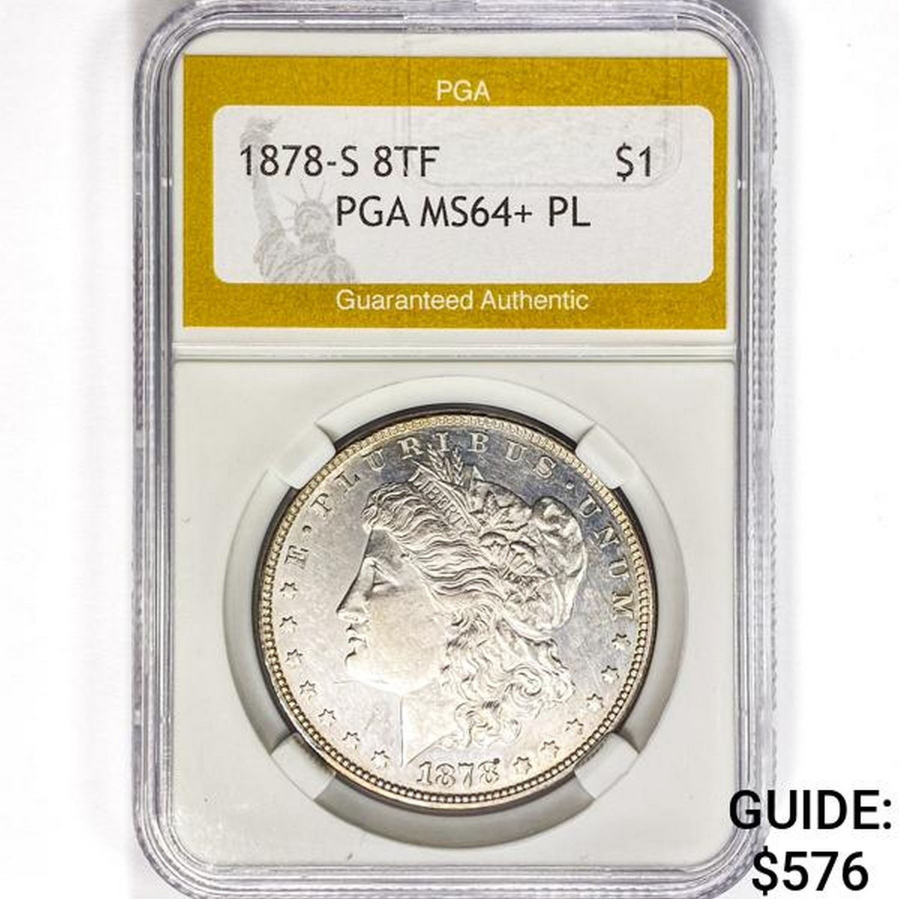 1878-S 8TF Morgan Silver Dollar PGA MS64+ PL