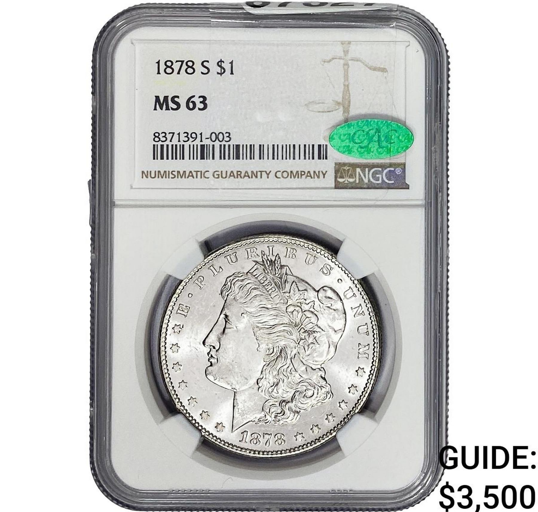 1878-S CAC Morgan Silver Dollar NGC MS63