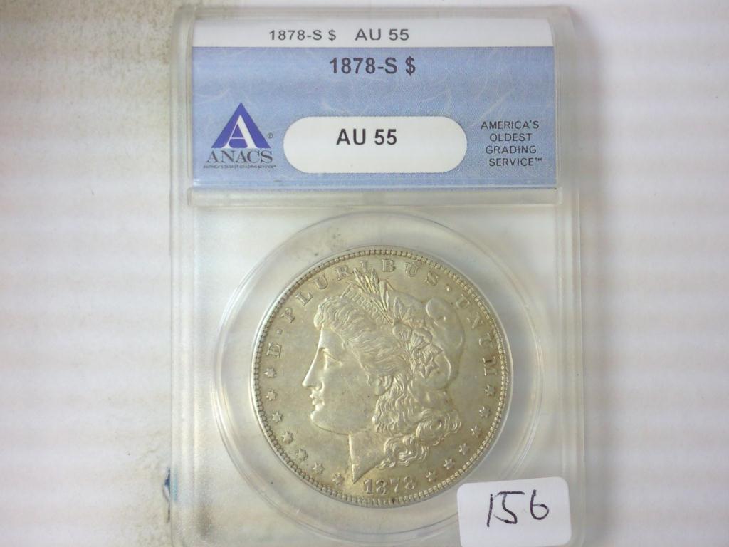 1878-S MORGAN SILVER DOLLAR ANACS AU55