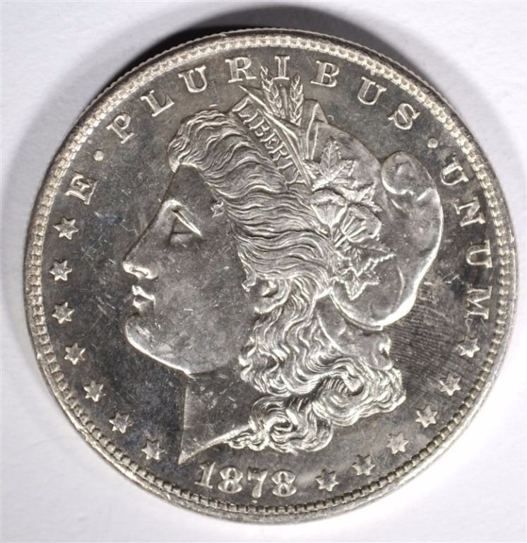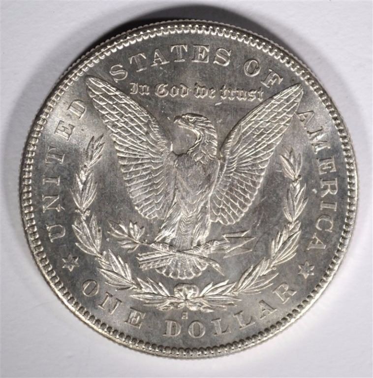 1878-S MORGAN SILVER DOLLAR, CH BU ESTIMATE $90 - $100.