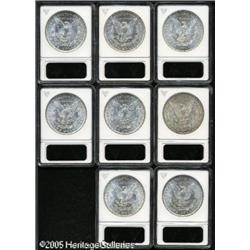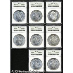<B>1878-S<img border='0' src='http://www.heritagecoins.com/images/star.gif' width=10 height=10>$1 MS64 Obverse Prooflike ANACS; 1880-S MS64 ANACS; 1881 MS64 ANACS; 1882-O MS64 ANACS; 1885 MS62 ANACS; 1888 MS64 ANACS; 1888-O MS64 ANACS;</B></I> and an <B>1889 MS64 ANACS.</B></I> An attractive group of dollars that are either brilliant or show light toning. 8 Coins Lot:9910