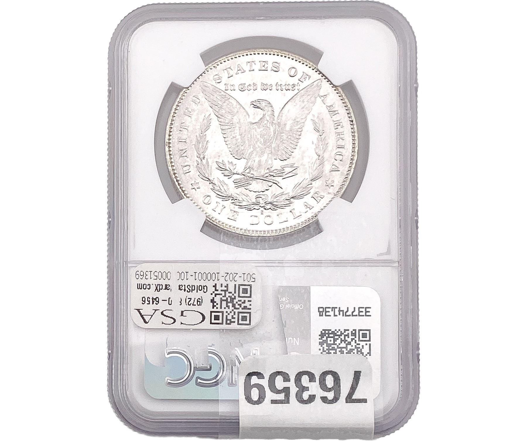 e. Coins sold referencing a third-party grading service are sold “AS IS” without any express or implied warranty, except for a guarantee by GSA that they are genuine. Removal or alteration of the holder, voids all of Bidder’s claims concerning that Product. Certain warranties may be available from the grading services and Bidders are referred to them for further details: Numismatic Guaranty Corporation (NGC), PO Box 4776, Sarasota, FL 34230, www.ngccoin.com/services/writtenguarantee.asp; Professional Coin Grading Services (PCGS), PO Box 9458, Newport Beach, CA 92658, www.pcgs.com/guarantee.html; ANACS, 6555 S. Kenton St., Ste. 303, Englewood, CO 80111; and Independent Coin Grading Co. (ICG), 7901 East Bellview, Ave., Suite 50, Englewood, CO 80111.