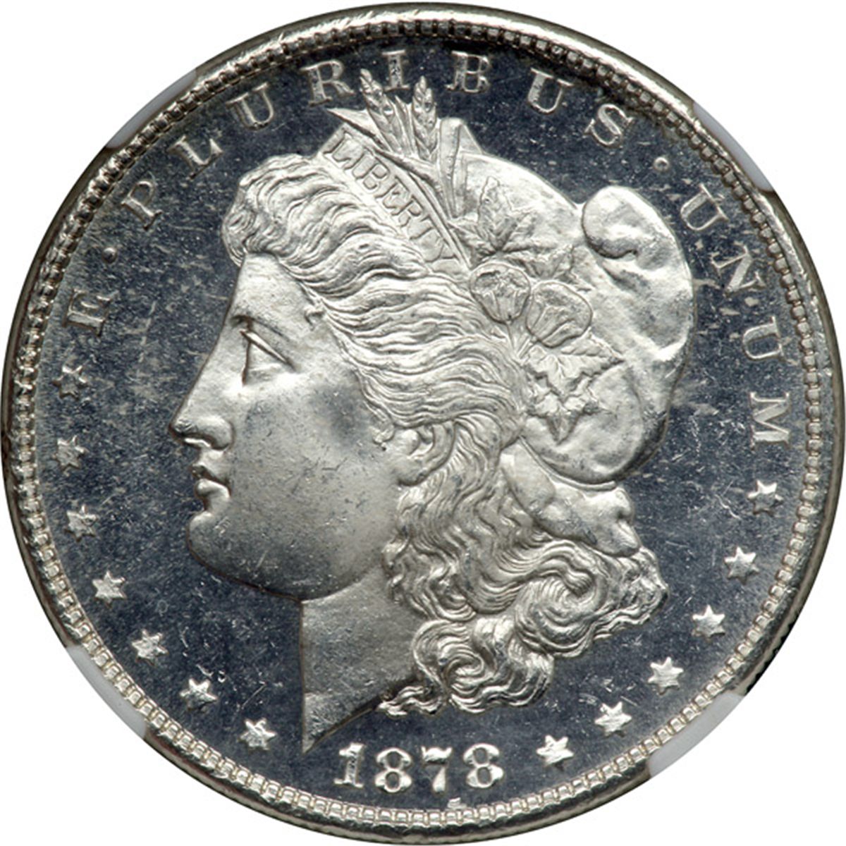 1878-S Morgan Dollar. NGC graded MS-65 Deep Mirror Prooflike. Fully white with pleasing prooflike surfaces on both sides. Fields and devices glow! Pop 27; 2 finer in 66 DPL.