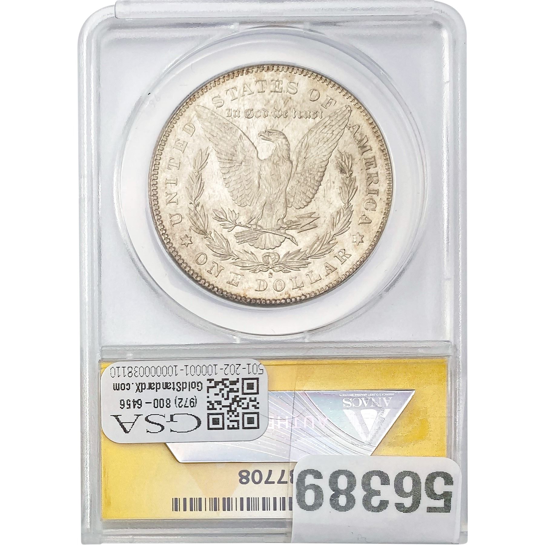 e. Coins sold referencing a third-party grading service are sold “AS IS” without any express or implied warranty, except for a guarantee by GSA that they are genuine. Removal or alteration of the holder, voids all of Bidder’s claims concerning that Product. Certain warranties may be available from the grading services and Bidders are referred to them for further details: Numismatic Guaranty Corporation (NGC), PO Box 4776, Sarasota, FL 34230, www.ngccoin.com/services/writtenguarantee.asp; Professional Coin Grading Services (PCGS), PO Box 9458, Newport Beach, CA 92658, www.pcgs.com/guarantee.html; ANACS, 6555 S. Kenton St., Ste. 303, Englewood, CO 80111; and Independent Coin Grading Co. (ICG), 7901 East Bellview, Ave., Suite 50, Englewood, CO 80111.