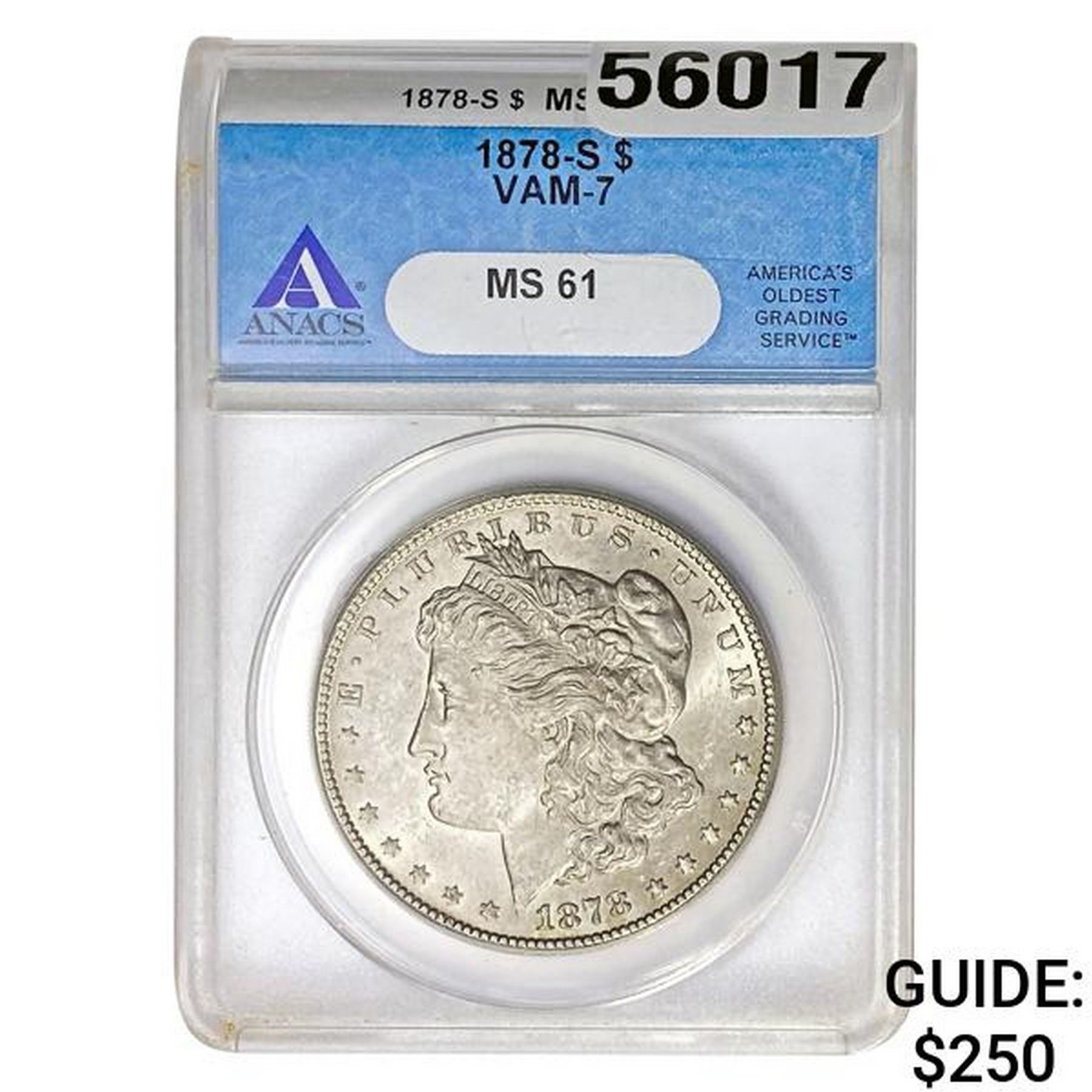 1878-S Morgan Dollar VAM-7 ANACS MS61