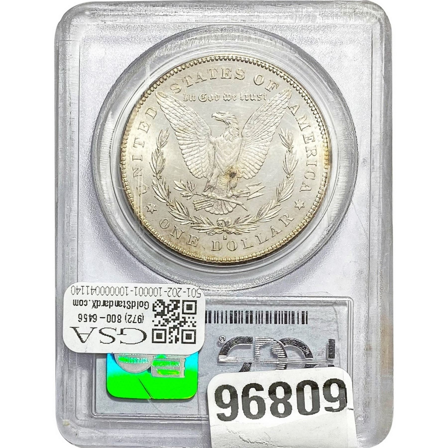 e. Coins sold referencing a third-party grading service are sold “AS IS” without any express or implied warranty, except for a guarantee by GSA that they are genuine. Removal or alteration of the holder, voids all of Bidder’s claims concerning that Product. Certain warranties may be available from the grading services and Bidders are referred to them for further details: Numismatic Guaranty Corporation (NGC), PO Box 4776, Sarasota, FL 34230, www.ngccoin.com/services/writtenguarantee.asp; Professional Coin Grading Services (PCGS), PO Box 9458, Newport Beach, CA 92658, www.pcgs.com/guarantee.html; ANACS, 6555 S. Kenton St., Ste. 303, Englewood, CO 80111; and Independent Coin Grading Co. (ICG), 7901 East Bellview, Ave., Suite 50, Englewood, CO 80111.