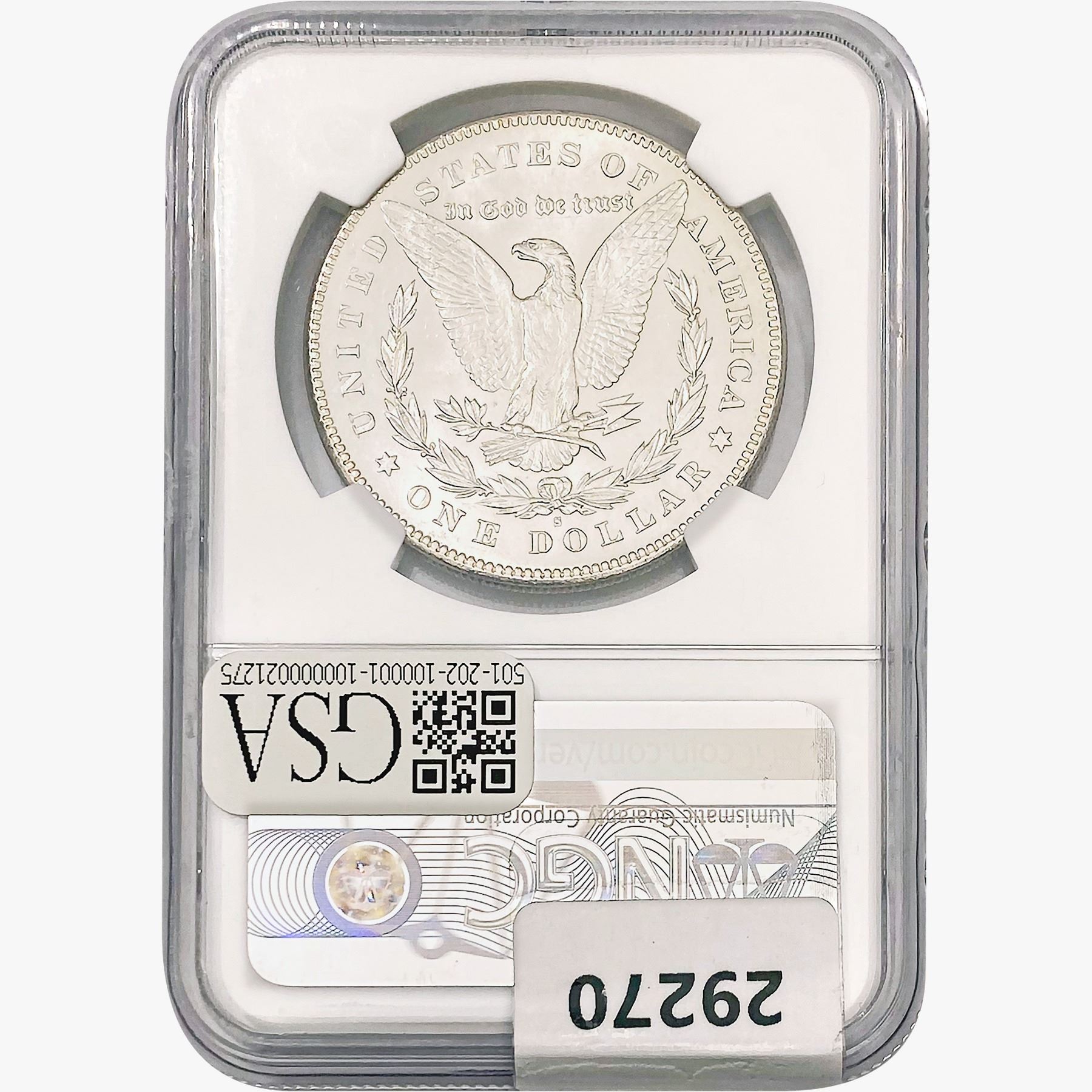 COINS AND CURRENCY LISTED IN GSA’S CATALOG AS GRADED AND ENCAPSULATED BY PCGS, NGC, ANACS, ICG, PCGS CURRENCY, PMG, PCGS BANKNOTE GRADING, CMC OR ANY OTHER THIRD-PARTY GRADING SERVICE ARE LIKEWISE SOLD “AS-IS” EXCEPT AS EXPRESSLY SET FORTH HEREIN. ALL THIRD-PARTY GRADING SERVICE GUARANTEES, INCLUDING AUTHENTICITY, ARE THE SOLE RESPONSIBILITY OF THE THIRD-PARTY GRADING SERVICE AND NOT WARRANTIES OR GUARANTEES OF GSA. BIDDERS SHOULD CONTACT THESE THIRD-PARTY GRADING SERVICES DIRECTLY WITH RESPECT TO ANY CLAIMS OR QUESTIONS THEY MAY HAVE CONCERNING THEIR GUARANTEES AND WARRANTIES. BIDDERS ACKNOWLEDGE AND AGREE THAT AUCTIONEER IS NOT BOUND BY OR LIABLE FOR ANY OPINION OR CERTIFICATION BY ANY THIRD-PARTY GRADING SERVICE. REMOVAL OF A PRODUCT FROM ITS PROTECTIVE CASING OR HOLDER OR ALTERATION OF ANY COIN HOLDER WAIVES ALL RIGHTS CONCERNING THE PRODUCT CONTAINED THEREIN.