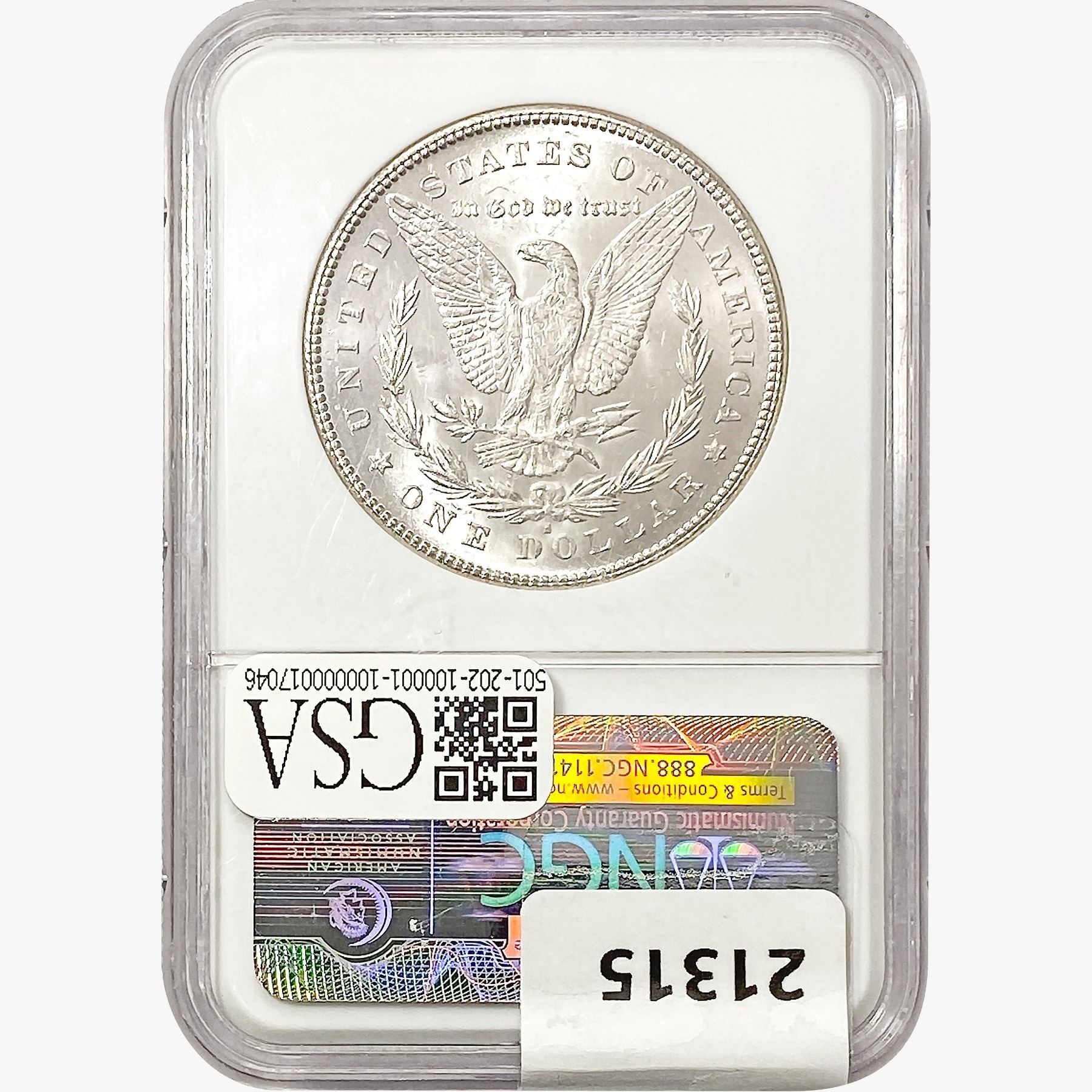 e. Coins sold referencing a third-party grading service are sold “AS IS” without any express or implied warranty, except for a guarantee by GSA that they are genuine. Removal or alteration of the holder, voids all of Bidder’s claims concerning that Product. Certain warranties may be available from the grading services and Bidders are referred to them for further details: Numismatic Guaranty Corporation (NGC), PO Box 4776, Sarasota, FL 34230, www.ngccoin.com/services/writtenguarantee.asp; Professional Coin Grading Services (PCGS), PO Box 9458, Newport Beach, CA 92658, www.pcgs.com/guarantee.html; ANACS, 6555 S. Kenton St., Ste. 303, Englewood, CO 80111; and Independent Coin Grading Co. (ICG), 7901 East Bellview, Ave., Suite 50, Englewood, CO 80111.