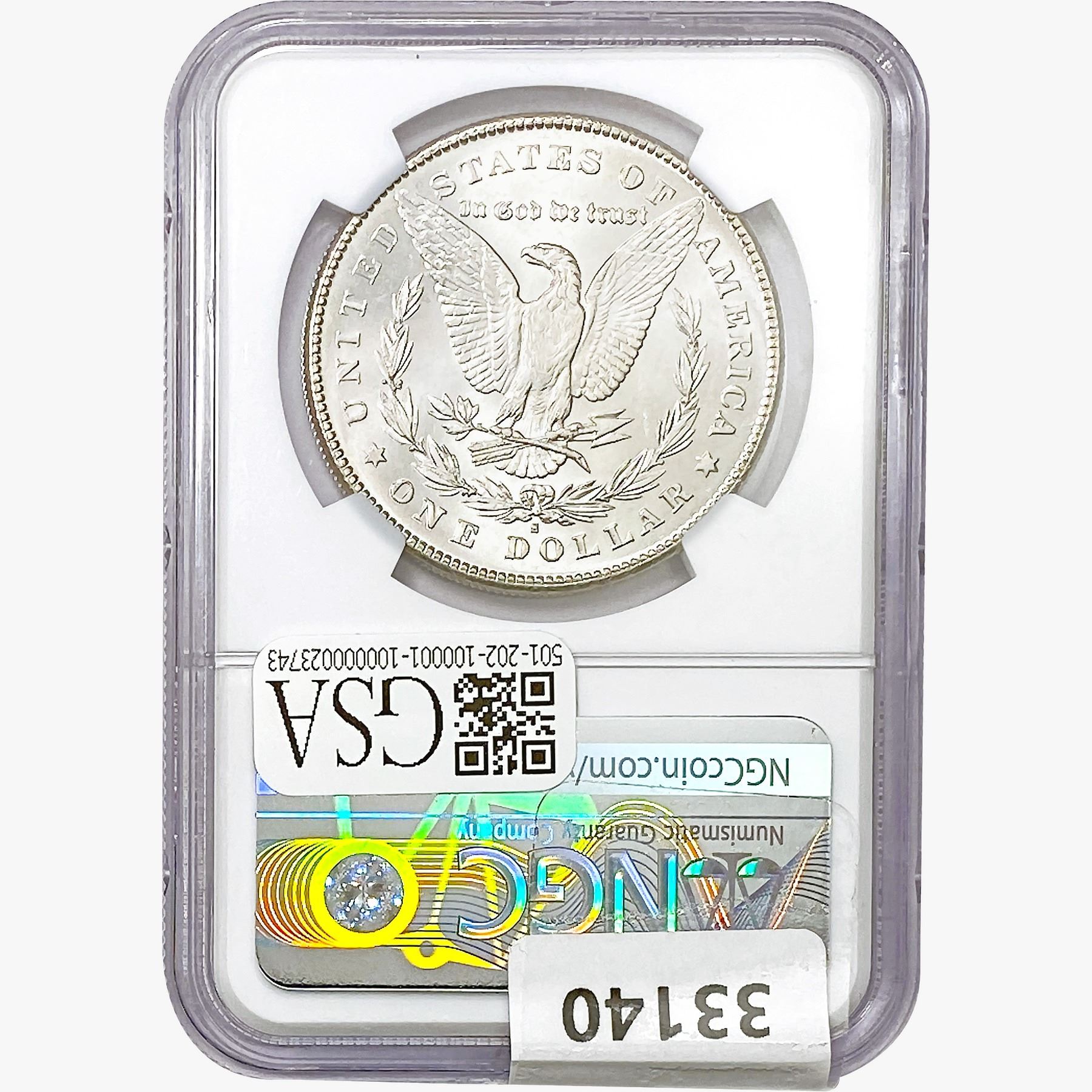 COINS AND CURRENCY LISTED IN GSA’S CATALOG AS GRADED AND ENCAPSULATED BY PCGS, NGC, ANACS, ICG, PCGS CURRENCY, PMG, PCGS BANKNOTE GRADING, CMC OR ANY OTHER THIRD-PARTY GRADING SERVICE ARE LIKEWISE SOLD “AS-IS” EXCEPT AS EXPRESSLY SET FORTH HEREIN. ALL THIRD-PARTY GRADING SERVICE GUARANTEES, INCLUDING AUTHENTICITY, ARE THE SOLE RESPONSIBILITY OF THE THIRD-PARTY GRADING SERVICE AND NOT WARRANTIES OR GUARANTEES OF GSA. BIDDERS SHOULD CONTACT THESE THIRD-PARTY GRADING SERVICES DIRECTLY WITH RESPECT TO ANY CLAIMS OR QUESTIONS THEY MAY HAVE CONCERNING THEIR GUARANTEES AND WARRANTIES. BIDDERS ACKNOWLEDGE AND AGREE THAT AUCTIONEER IS NOT BOUND BY OR LIABLE FOR ANY OPINION OR CERTIFICATION BY ANY THIRD-PARTY GRADING SERVICE. REMOVAL OF A PRODUCT FROM ITS PROTECTIVE CASING OR HOLDER OR ALTERATION OF ANY COIN HOLDER WAIVES ALL RIGHTS CONCERNING THE PRODUCT CONTAINED THEREIN.