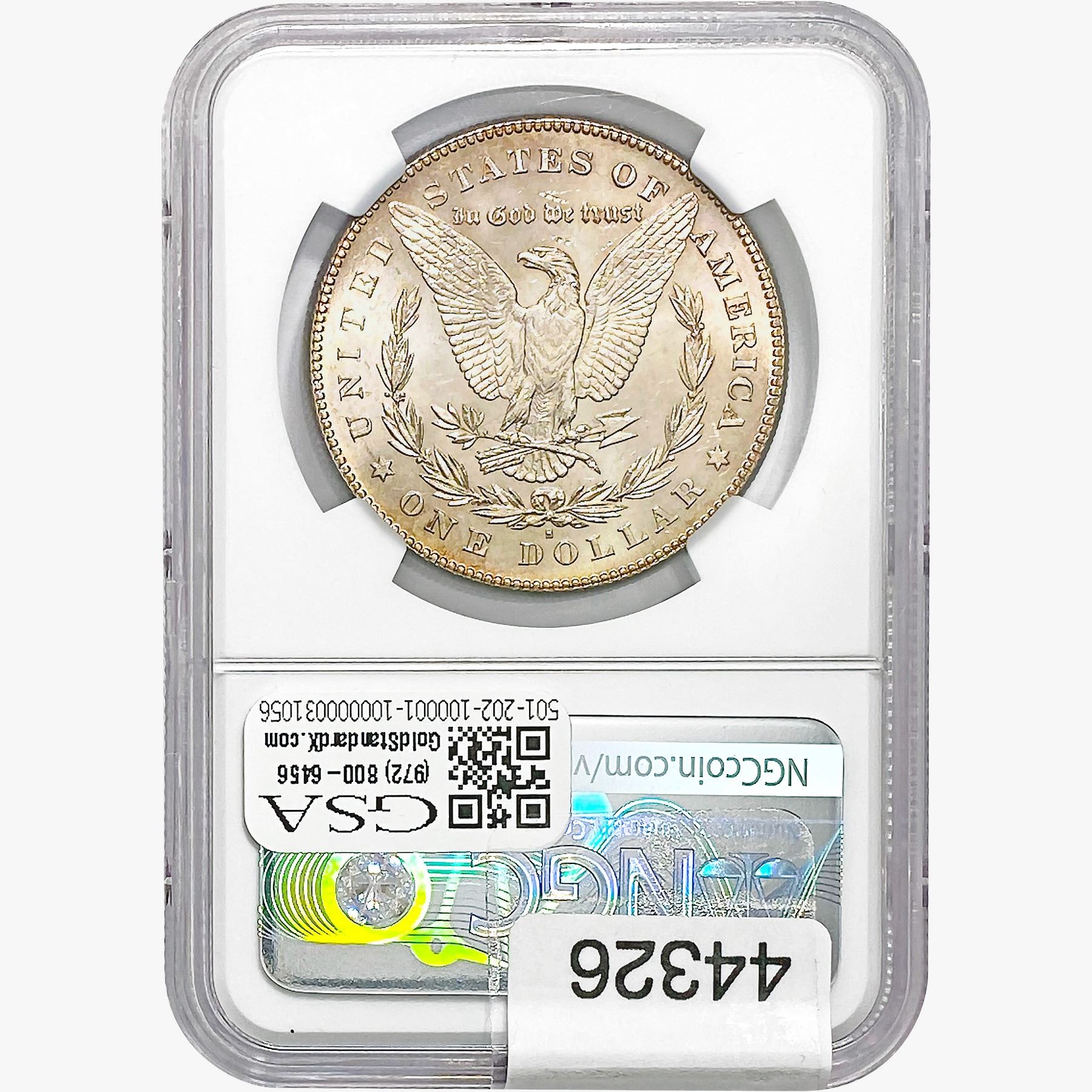 e. Coins sold referencing a third-party grading service are sold “AS IS” without any express or implied warranty, except for a guarantee by GSA that they are genuine. Removal or alteration of the holder, voids all of Bidder’s claims concerning that Product. Certain warranties may be available from the grading services and Bidders are referred to them for further details: Numismatic Guaranty Corporation (NGC), PO Box 4776, Sarasota, FL 34230, www.ngccoin.com/services/writtenguarantee.asp; Professional Coin Grading Services (PCGS), PO Box 9458, Newport Beach, CA 92658, www.pcgs.com/guarantee.html; ANACS, 6555 S. Kenton St., Ste. 303, Englewood, CO 80111; and Independent Coin Grading Co. (ICG), 7901 East Bellview, Ave., Suite 50, Englewood, CO 80111.