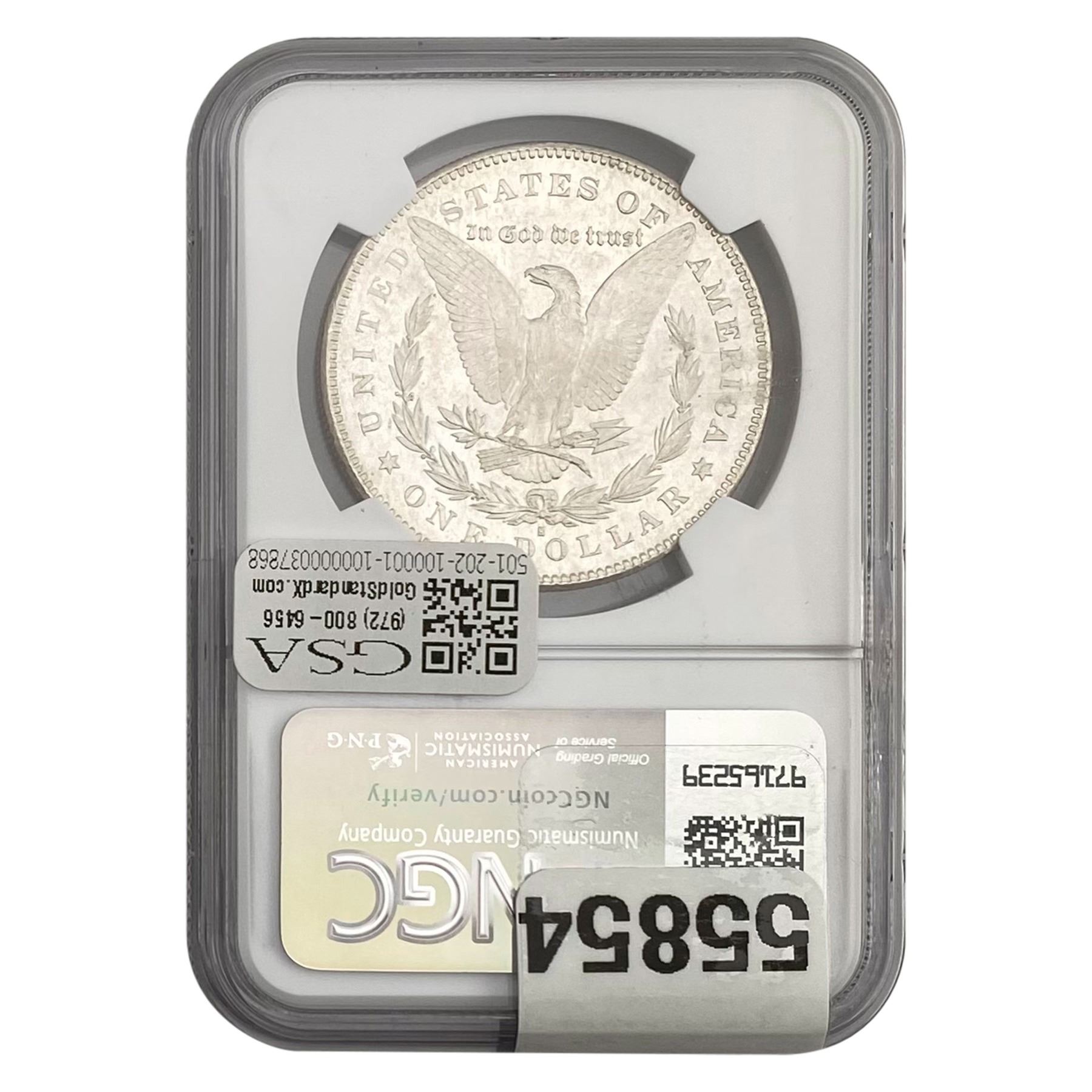 e. Coins sold referencing a third-party grading service are sold “AS IS” without any express or implied warranty, except for a guarantee by GSA that they are genuine. Removal or alteration of the holder, voids all of Bidder’s claims concerning that Product. Certain warranties may be available from the grading services and Bidders are referred to them for further details: Numismatic Guaranty Corporation (NGC), PO Box 4776, Sarasota, FL 34230, www.ngccoin.com/services/writtenguarantee.asp; Professional Coin Grading Services (PCGS), PO Box 9458, Newport Beach, CA 92658, www.pcgs.com/guarantee.html; ANACS, 6555 S. Kenton St., Ste. 303, Englewood, CO 80111; and Independent Coin Grading Co. (ICG), 7901 East Bellview, Ave., Suite 50, Englewood, CO 80111.