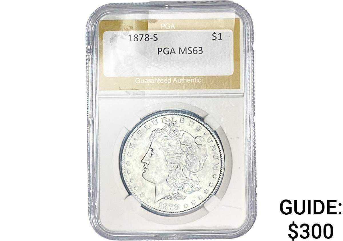 COINS AND CURRENCY LISTED IN GSA’S CATALOG AS GRADED AND ENCAPSULATED BY PCGS, NGC, ANACS, ICG, PCGS CURRENCY, PMG, PCGS BANKNOTE GRADING, CMC OR ANY OTHER THIRD-PARTY GRADING SERVICE ARE LIKEWISE SOLD “AS-IS” EXCEPT AS EXPRESSLY SET FORTH HEREIN. ALL THIRD-PARTY GRADING SERVICE GUARANTEES, INCLUDING AUTHENTICITY, ARE THE SOLE RESPONSIBILITY OF THE THIRD-PARTY GRADING SERVICE AND NOT WARRANTIES OR GUARANTEES OF GSA. BIDDERS SHOULD CONTACT THESE THIRD-PARTY GRADING SERVICES DIRECTLY WITH RESPECT TO ANY CLAIMS OR QUESTIONS THEY MAY HAVE CONCERNING THEIR GUARANTEES AND WARRANTIES. BIDDERS ACKNOWLEDGE AND AGREE THAT AUCTIONEER IS NOT BOUND BY OR LIABLE FOR ANY OPINION OR CERTIFICATION BY ANY THIRD-PARTY GRADING SERVICE. REMOVAL OF A PRODUCT FROM ITS PROTECTIVE CASING OR HOLDER OR ALTERATION OF ANY COIN HOLDER WAIVES ALL RIGHTS CONCERNING THE PRODUCT CONTAINED THEREIN.