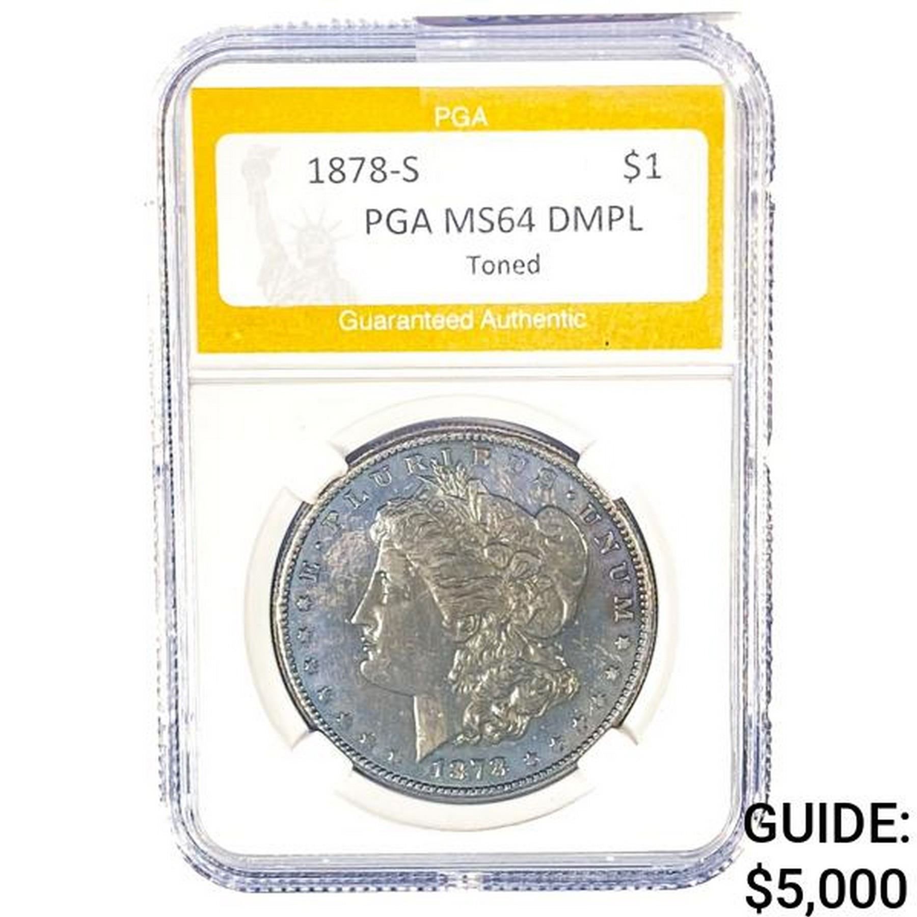1878-S Morgan Silver Dollar PGA MS64 DMPL TONED