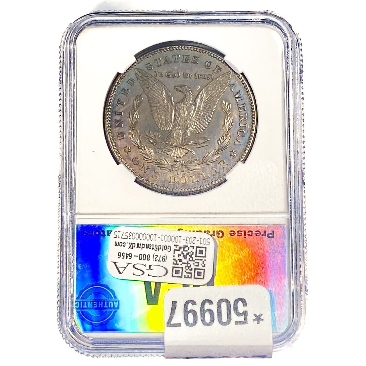 e. Coins sold referencing a third-party grading service are sold “AS IS” without any express or implied warranty, except for a guarantee by GSA that they are genuine. Removal or alteration of the holder, voids all of Bidder’s claims concerning that Product. Certain warranties may be available from the grading services and Bidders are referred to them for further details: Numismatic Guaranty Corporation (NGC), PO Box 4776, Sarasota, FL 34230, www.ngccoin.com/services/writtenguarantee.asp; Professional Coin Grading Services (PCGS), PO Box 9458, Newport Beach, CA 92658, www.pcgs.com/guarantee.html; ANACS, 6555 S. Kenton St., Ste. 303, Englewood, CO 80111; and Independent Coin Grading Co. (ICG), 7901 East Bellview, Ave., Suite 50, Englewood, CO 80111.