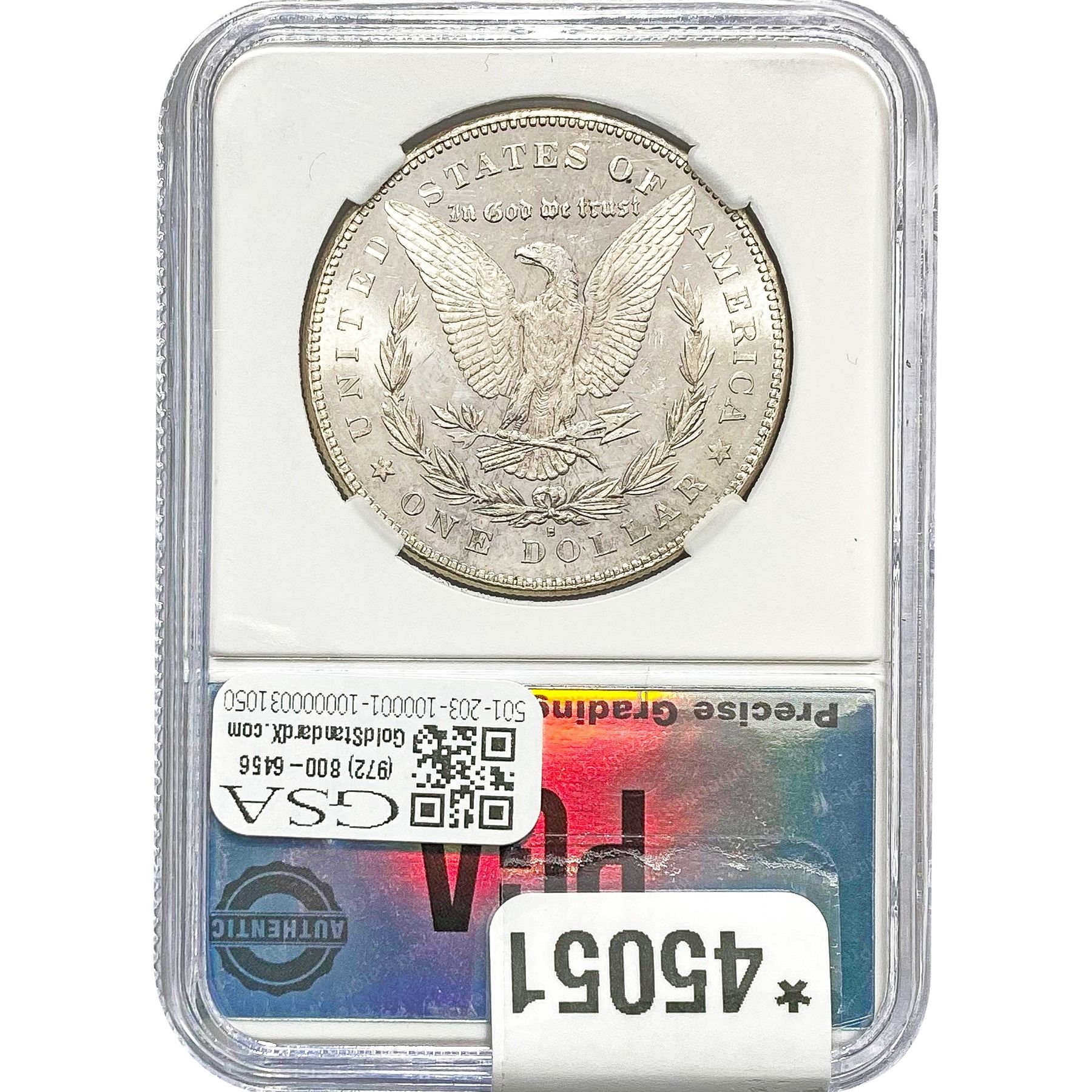 e. Coins sold referencing a third-party grading service are sold “AS IS” without any express or implied warranty, except for a guarantee by GSA that they are genuine. Removal or alteration of the holder, voids all of Bidder’s claims concerning that Product. Certain warranties may be available from the grading services and Bidders are referred to them for further details: Numismatic Guaranty Corporation (NGC), PO Box 4776, Sarasota, FL 34230, www.ngccoin.com/services/writtenguarantee.asp; Professional Coin Grading Services (PCGS), PO Box 9458, Newport Beach, CA 92658, www.pcgs.com/guarantee.html; ANACS, 6555 S. Kenton St., Ste. 303, Englewood, CO 80111; and Independent Coin Grading Co. (ICG), 7901 East Bellview, Ave., Suite 50, Englewood, CO 80111.