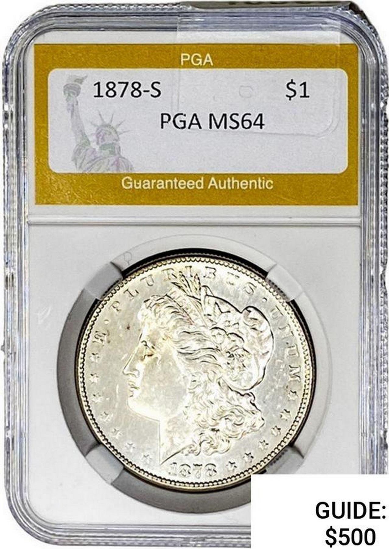 COINS AND CURRENCY LISTED IN GSA’S CATALOG AS GRADED AND ENCAPSULATED BY PCGS, NGC, ANACS, ICG, PCGS CURRENCY, PMG, PCGS BANKNOTE GRADING, CMC OR ANY OTHER THIRD-PARTY GRADING SERVICE ARE LIKEWISE SOLD “AS-IS” EXCEPT AS EXPRESSLY SET FORTH HEREIN. ALL THIRD-PARTY GRADING SERVICE GUARANTEES, INCLUDING AUTHENTICITY, ARE THE SOLE RESPONSIBILITY OF THE THIRD-PARTY GRADING SERVICE AND NOT WARRANTIES OR GUARANTEES OF GSA. BIDDERS SHOULD CONTACT THESE THIRD-PARTY GRADING SERVICES DIRECTLY WITH RESPECT TO ANY CLAIMS OR QUESTIONS THEY MAY HAVE CONCERNING THEIR GUARANTEES AND WARRANTIES. BIDDERS ACKNOWLEDGE AND AGREE THAT AUCTIONEER IS NOT BOUND BY OR LIABLE FOR ANY OPINION OR CERTIFICATION BY ANY THIRD-PARTY GRADING SERVICE. REMOVAL OF A PRODUCT FROM ITS PROTECTIVE CASING OR HOLDER OR ALTERATION OF ANY COIN HOLDER WAIVES ALL RIGHTS CONCERNING THE PRODUCT CONTAINED THEREIN.
