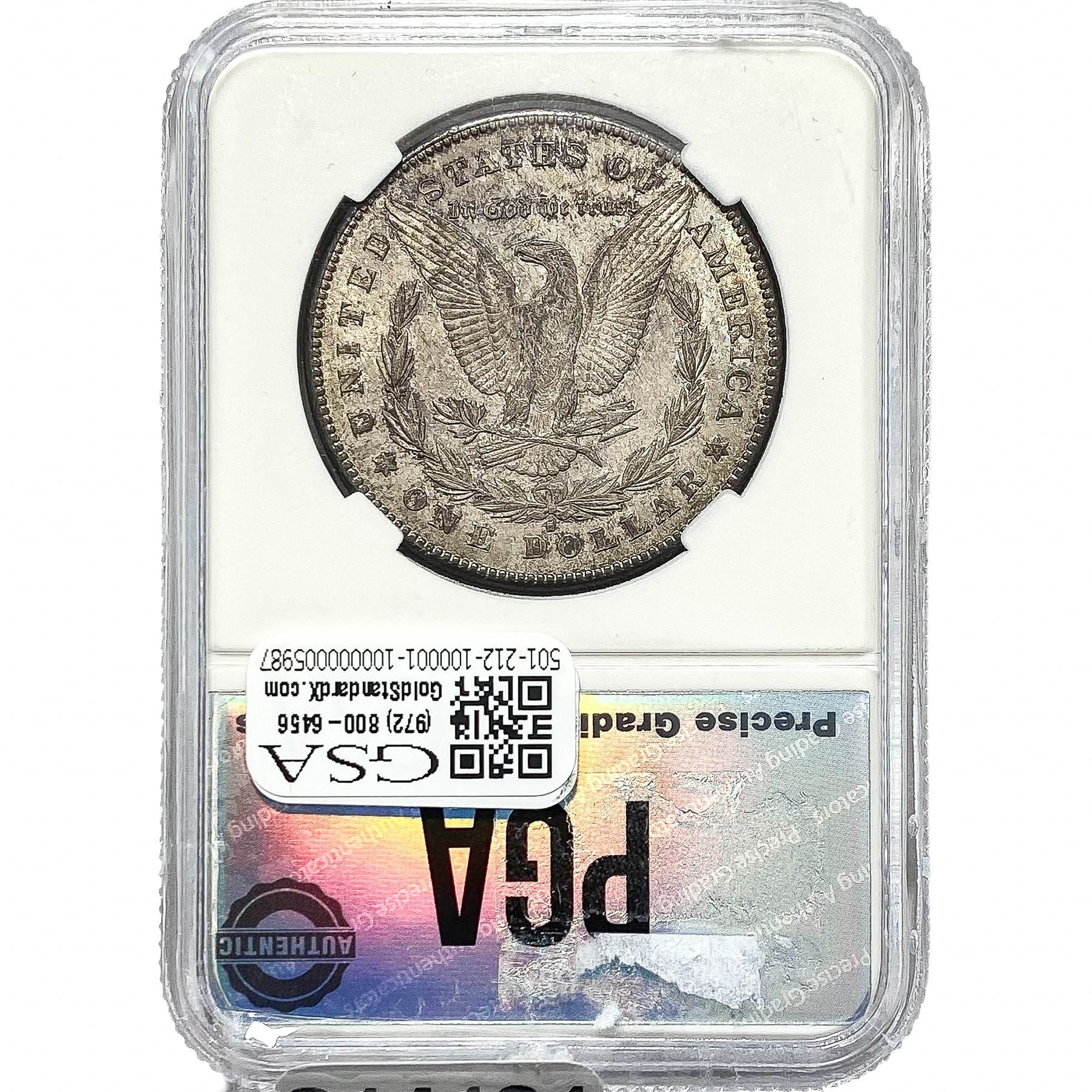 e. Coins sold referencing a third-party grading service are sold “AS IS” without any express or implied warranty, except for a guarantee by GSA that they are genuine. Removal or alteration of the holder, voids all of Bidder’s claims concerning that Product. Certain warranties may be available from the grading services and Bidders are referred to them for further details: Numismatic Guaranty Corporation (NGC), PO Box 4776, Sarasota, FL 34230, www.ngccoin.com/services/writtenguarantee.asp; Professional Coin Grading Services (PCGS), PO Box 9458, Newport Beach, CA 92658, www.pcgs.com/guarantee.html; ANACS, 6555 S. Kenton St., Ste. 303, Englewood, CO 80111; and Independent Coin Grading Co. (ICG), 7901 East Bellview, Ave., Suite 50, Englewood, CO 80111.