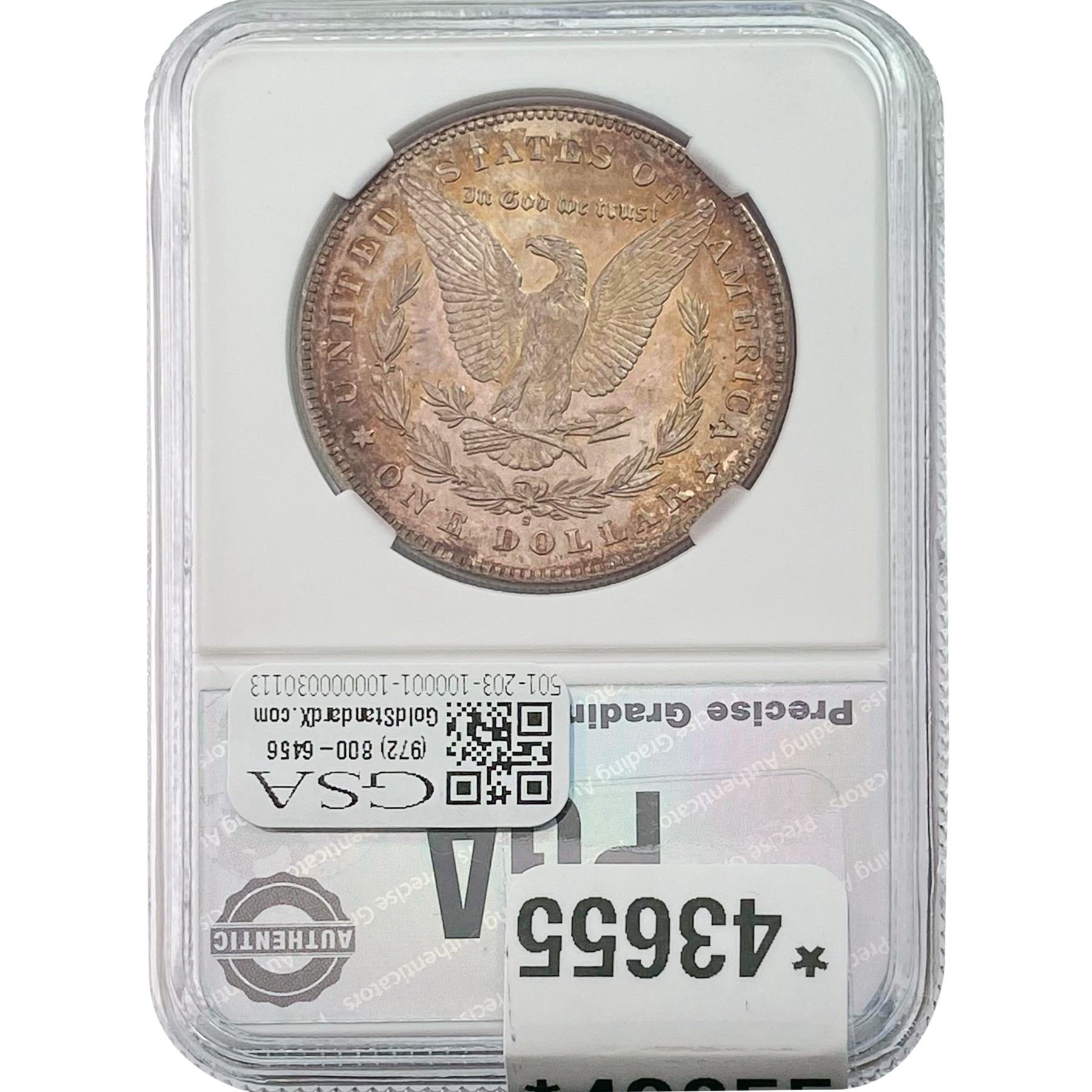 e. Coins sold referencing a third-party grading service are sold “AS IS” without any express or implied warranty, except for a guarantee by GSA that they are genuine. Removal or alteration of the holder, voids all of Bidder’s claims concerning that Product. Certain warranties may be available from the grading services and Bidders are referred to them for further details: Numismatic Guaranty Corporation (NGC), PO Box 4776, Sarasota, FL 34230, www.ngccoin.com/services/writtenguarantee.asp; Professional Coin Grading Services (PCGS), PO Box 9458, Newport Beach, CA 92658, www.pcgs.com/guarantee.html; ANACS, 6555 S. Kenton St., Ste. 303, Englewood, CO 80111; and Independent Coin Grading Co. (ICG), 7901 East Bellview, Ave., Suite 50, Englewood, CO 80111.
