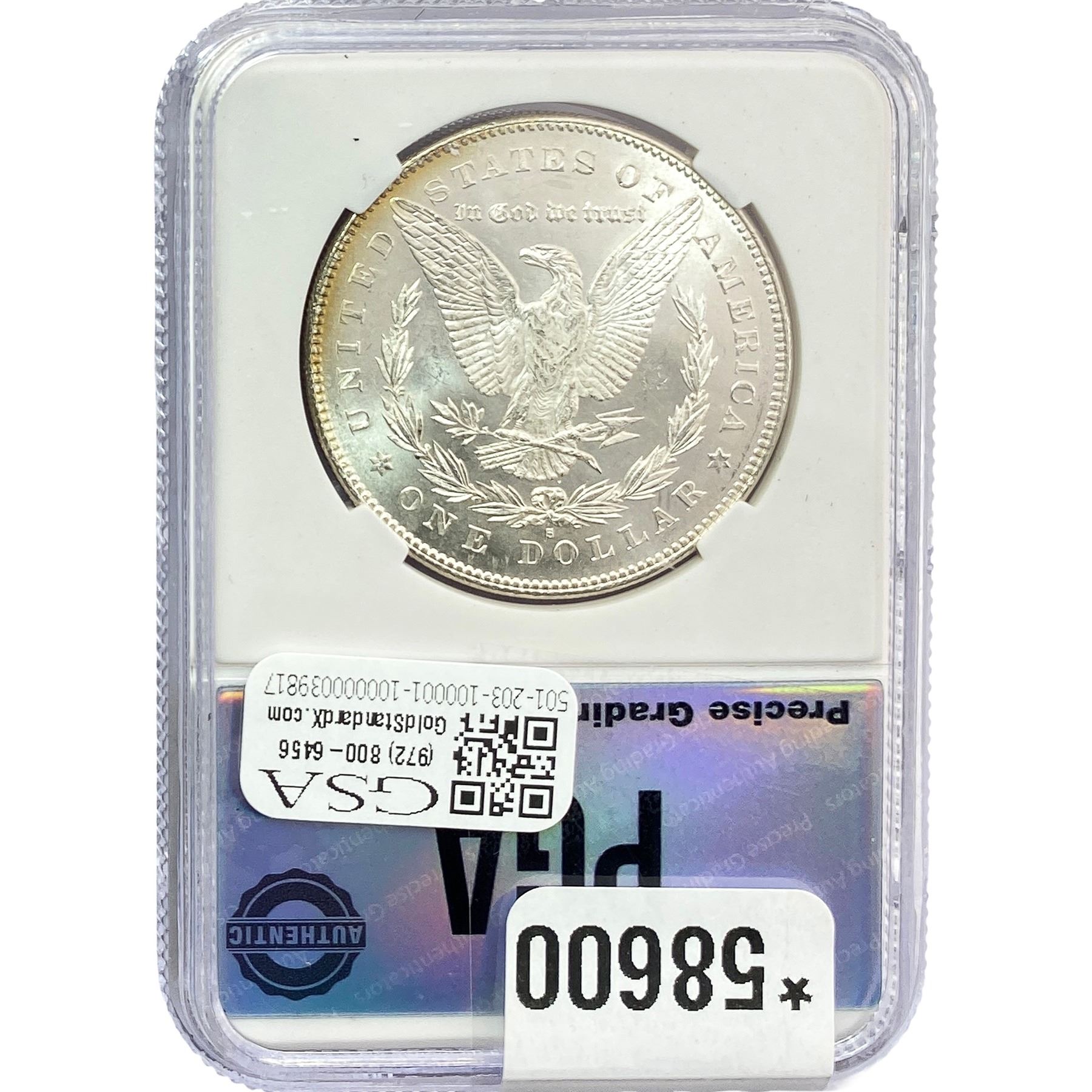 e. Coins sold referencing a third-party grading service are sold “AS IS” without any express or implied warranty, except for a guarantee by GSA that they are genuine. Removal or alteration of the holder, voids all of Bidder’s claims concerning that Product. Certain warranties may be available from the grading services and Bidders are referred to them for further details: Numismatic Guaranty Corporation (NGC), PO Box 4776, Sarasota, FL 34230, www.ngccoin.com/services/writtenguarantee.asp; Professional Coin Grading Services (PCGS), PO Box 9458, Newport Beach, CA 92658, www.pcgs.com/guarantee.html; ANACS, 6555 S. Kenton St., Ste. 303, Englewood, CO 80111; and Independent Coin Grading Co. (ICG), 7901 East Bellview, Ave., Suite 50, Englewood, CO 80111.