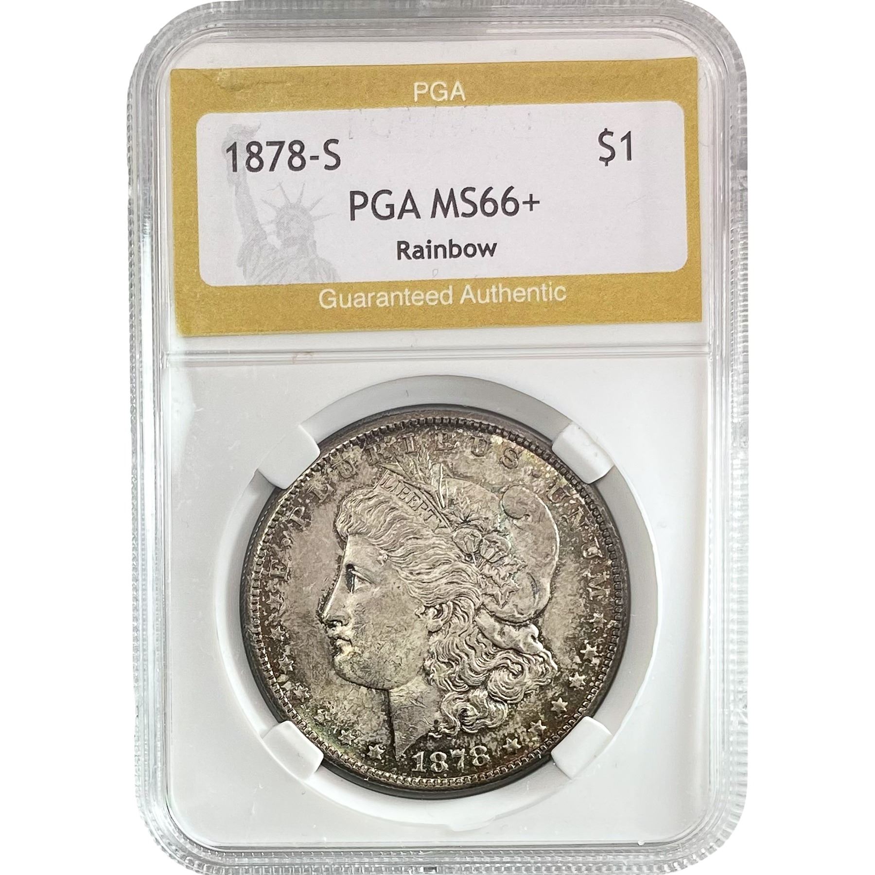 1878-S Morgan Silver Dollar PGA MS66+ Rainbow
