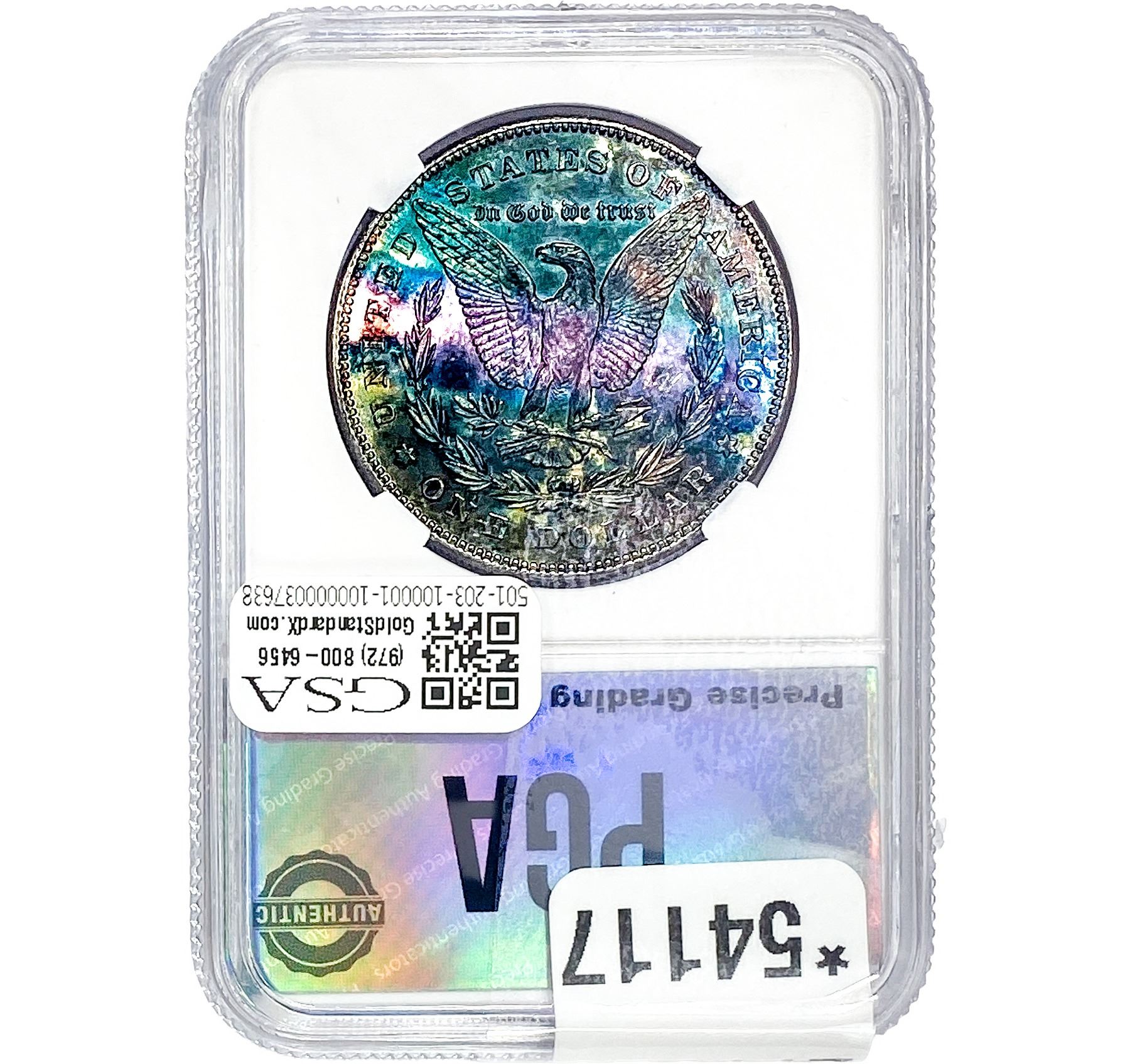 e. Coins sold referencing a third-party grading service are sold “AS IS” without any express or implied warranty, except for a guarantee by GSA that they are genuine. Removal or alteration of the holder, voids all of Bidder’s claims concerning that Product. Certain warranties may be available from the grading services and Bidders are referred to them for further details: Numismatic Guaranty Corporation (NGC), PO Box 4776, Sarasota, FL 34230, www.ngccoin.com/services/writtenguarantee.asp; Professional Coin Grading Services (PCGS), PO Box 9458, Newport Beach, CA 92658, www.pcgs.com/guarantee.html; ANACS, 6555 S. Kenton St., Ste. 303, Englewood, CO 80111; and Independent Coin Grading Co. (ICG), 7901 East Bellview, Ave., Suite 50, Englewood, CO 80111.
