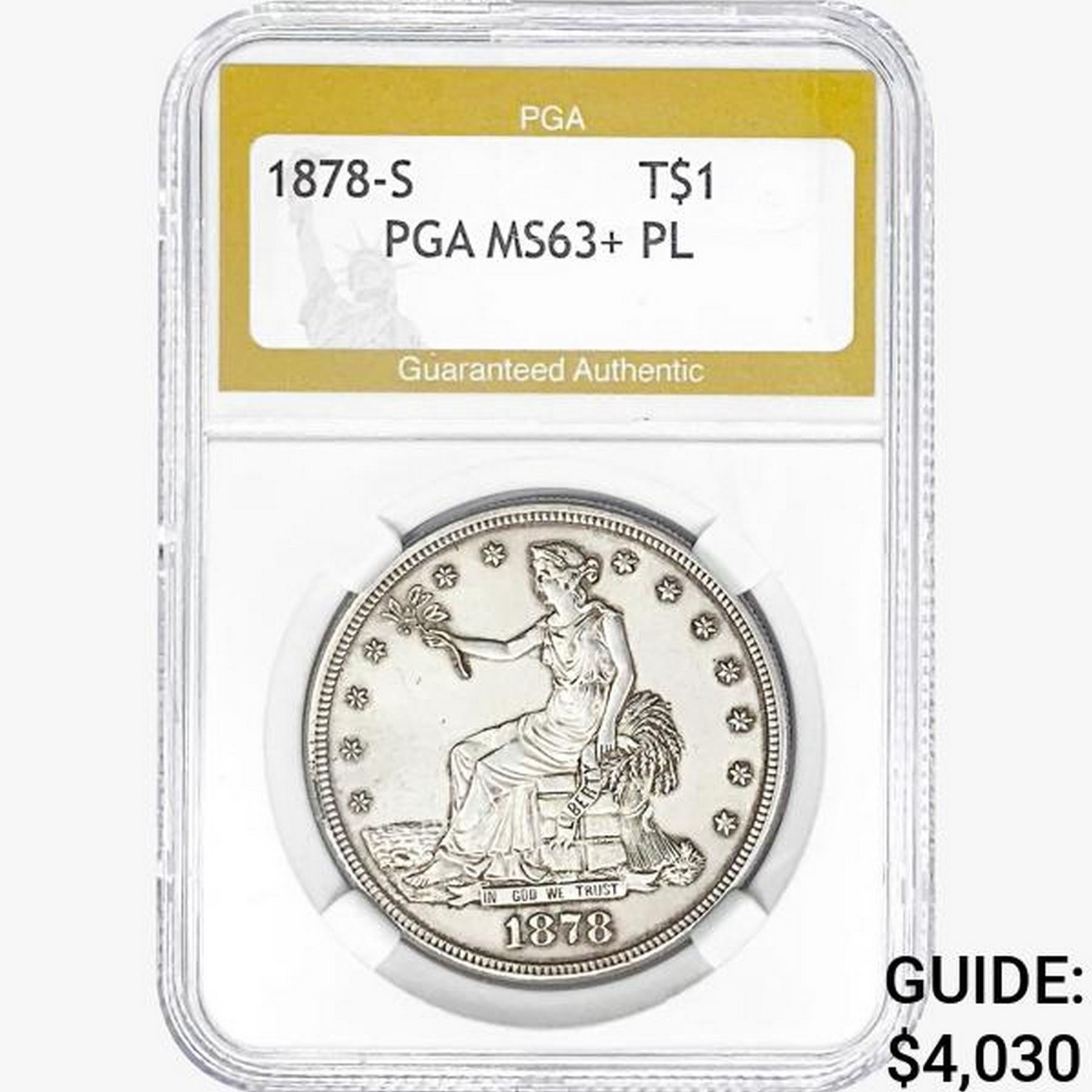 1878-S Silver Trade Dollar PGA MS63+ PL