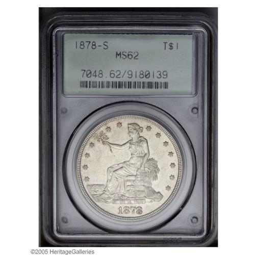 <B>1878-S<T$1> MS62 PCGS.</B></I> Sharply struck on each side and showing just the slightest hint of toning, the fields are bright but overall the coin is a bit luster deficient to grade any higher.