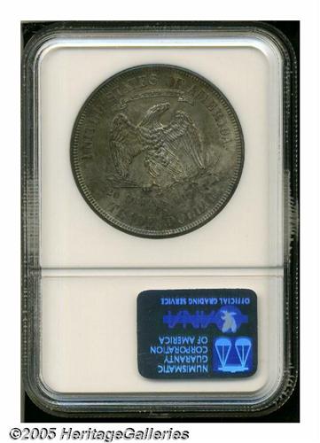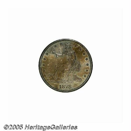 <B>1878-S<T$1> MS64 NGC.</B></I> Boldly struck, indeed close to fully defined, with a moderate layer of multicolored patina over both sides that diminishes slightly what is actually vibrant cartwheel luster. Close examination is required to find even a small abrasion on either side.