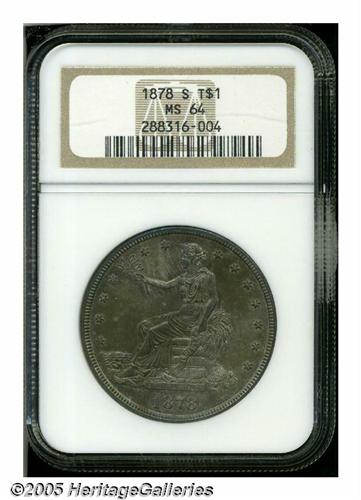 1878-S T$1 MS64 NGC. Boldly struck, indeed close