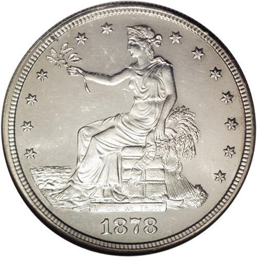 <B>1878-S<T$1> MS64 NGC.</B></I> Fully struck and highly lustrous with bright prooflike fields on the obverse and reverse. The luster, prooflikeness, and striking details are all fully evident as there is a snow-white appearance over each side. A few minor rim bumps are seen at the top of the reverse. A lovely type coin for the serious collector. <BR><BR><B>Important notice:</B> Heritage usually auctions material at the rate of 200-250 lots per hour. On some occasions eBay Live bid software or the Internet may not be able to keep up with the pace of the auction. We recommend placing a realistic absentee bid now as insurance to avoid disappointment. Occasionally the auctioneer may eliminate or reject an eBay Live bid, and the auctioneer may also reopen a lot after the close of the eBay live bidding (usually because we missed an audience bid), and may reject your bid even if it shows you as the winning bidder. By bidding via eBay Live, you agree that Heritage may award the lot to another bidder at its sole discretion under the circumstances described above or any other reasonable circumstances. Since eBay bids are not shown to us until we open the lot on the floor, we treat those bids just like floor bids. In most cases the floor responds before the eBay bid is presented to us, due to Internet lag time, so for consistency we have made it a policy that floor bids are always considered first over tie eBay live bids. Also please note that all Heritage lots purchased through eBay Live carry a 20% Buyer's Premium. Please make sure you read the Terms and Conditions before you bid. This lot is being auctioned in conjunction with a live floor auction by Heritage Galleries & Auctioneers. All final auction and invoice information will be supplied by Heritage Galleries & Auctioneers, and all other information should be considered preliminary. Lot:2230 <BR><BR><B>Winning Notification and Billing:</B> After the FINAL session in this auction is complete, Heritage will send e-mail and snail mail invoices. This process normally takes several days. All final auction and invoice information will be supplied by Heritage Galleries & Auctioneers, and all other information should be considered preliminary. <BR><BR>This auction will be conducted on a live auction floor and over the Internet through eBay Live. If you choose to place an absentee bid, please take a moment to <font color='#0000ff'><u><a href='http://pages.ebay.com/liveauctions/help/before/laabsentee.html'>learn how eBay Live absentee bidding works</a></u></font><font color='#000000'>