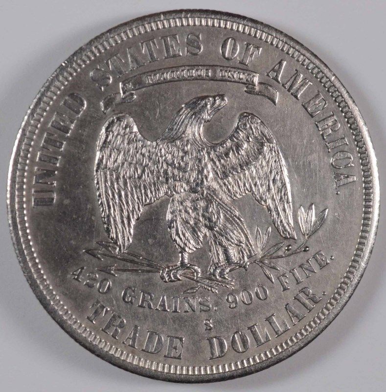 1878-S TRADE DOLLAR, MS-62 ( cleaned ) WHITE!